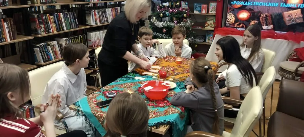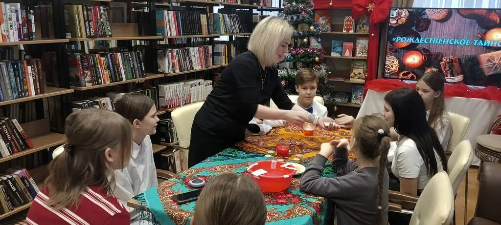 В библиотеке прошла познавательная страница «Рождественское таинство». Юные читатели познакомились с рождественскими легендами, традициями, народными приметами. Поучаствовали в веселых конкурсах, отгадали зимние загадки, а также ответили на различные вопросы на новогоднюю тематику. Но Рождество - это не только большой православный праздник, но и старт для знаменитых святочных гаданий. Сотрудники библиотеки рассказали о разных видах гадания, таких как: гадание на свечах, на воде, на рисе, на спичках и, конечно же, гадание на книгах которое ребята испробовали на себе и узнали, что их ожидает в 2026 году.