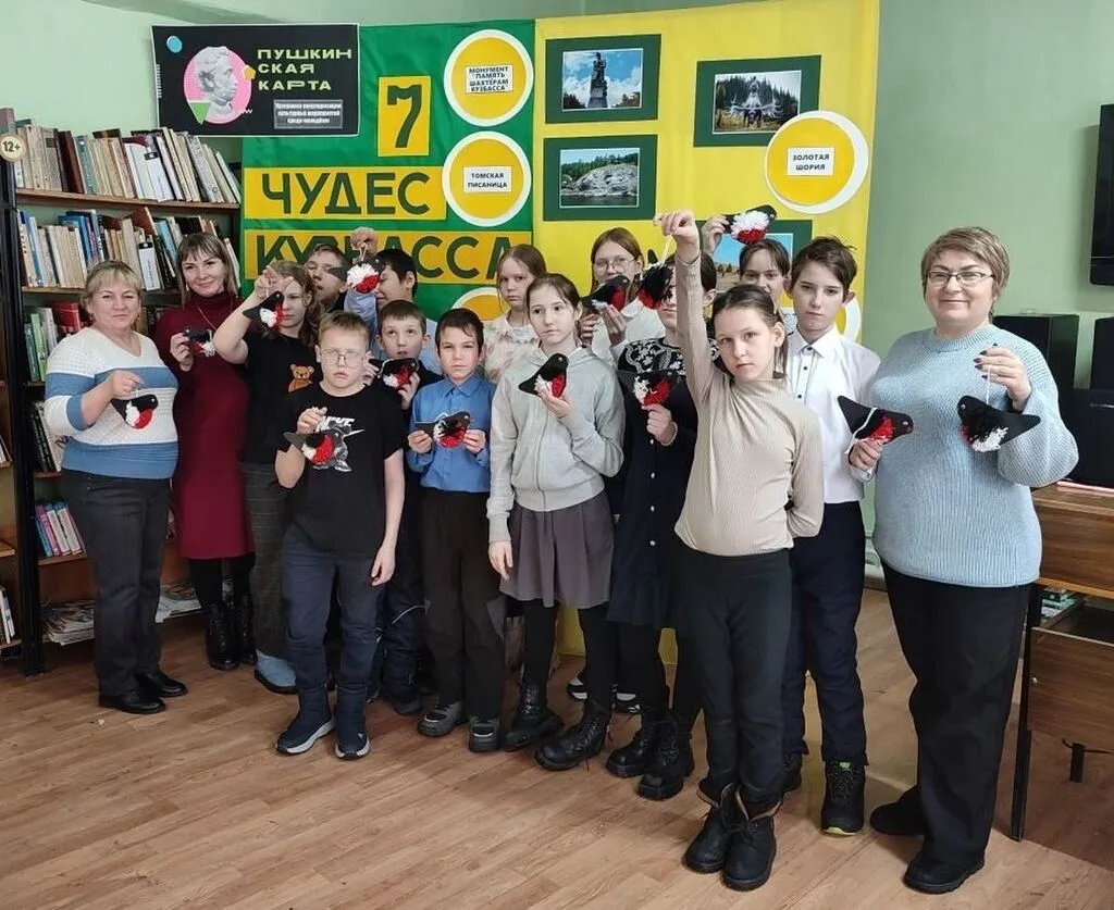 В Центральной детской библиотеке г. Гурьевска прошла информационно - обозревательная программа «Семь чудес Кузбасса». Посетители мероприятия узнали об исторических местах Кузбасса, их уникальности и значимости для современного поколения. Библиотекарь рассказала о «Семи чудесах Кузбасса», где каждый природный и культурный объект является уникальной знаменитостью, имеющий свою историю: «Поднебесные Зубья», музей-заповедник «Томская писаница», историко-архитектурный музей «Кузнецкая крепость», «Азасская пещера», скульптура «Золотая Шория», «город-музей – Мариинск» под открытым небом и монумент «Память шахтерам Кузбасса». Кроме того, ребята познакомились с краеведческой литературой, имеющейся в фонде библиотеки и представленной на выставке «Я шагаю по Кузбассу». Особое внимание было уделено книге «История Гурьевского района», в которой наглядно проиллюстрировано промышленное освоение Кузбасса, начавшееся именно в Гурьевском округе три века назад. Затем всем желающим предстояло пройти несколько испытаний, в котором помогли всем знания, находчивость и смекалка: «Растительный и животный мир края», «Собери название птицы», «Заморочки из бочки», «Угадай по описанию животного», а также собрали пазлы – пейзажи природы родного края. В завершение встречи участники мероприятия своими руками изготовили сувениры, посвященные родному краю - поделку из ниток зимующей птицы Кузбасса - Снегиря.