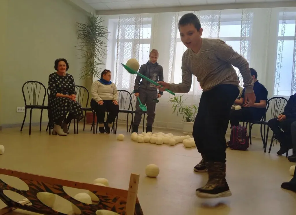 Но какая же Масленица без веселых игр? Участники игротеки оторвались по полной! Ребята с азартом играли в «Сбей валенок», где нужно было сбить у соседа валенок с палки. В игре «Напеки пироги в печи» дети почувствовали себя настоящими кулинарами, закидывая воображаемые пироги в огромную печь. Игры: «Выбей друга мешком из обруча» вызвала бурю смеха и азарта, а «Перенеси блин» потребовала ловкости и аккуратности. Особый восторг вызвала игра «Побегай в огромных ведрах», где дети с трудом, но с огромным удовольствием передвигались в гигантских ведрах, да еще и с блином на голове.
