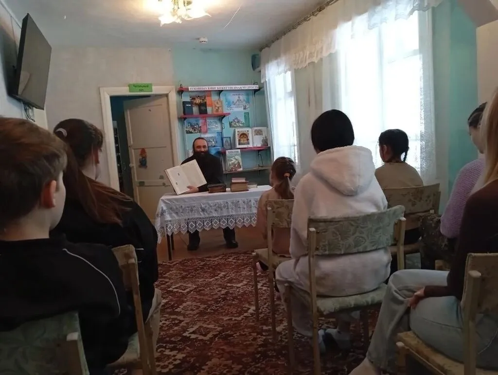Это была встреча, где книга стала не просто страницами с текстом, а настоящим проводником к размышлению о добре, милосердии, любви к ближнему и духовных истоках нашей культуры. В гости к ребятам пришёл протоиерей Андрей Марченко, настоятель храма в посёлке Урск. Он рассказал о духовных книгах и о том, почему именно через чтение человек учится думать глубже, понимать себя и искать верный жизненный путь.